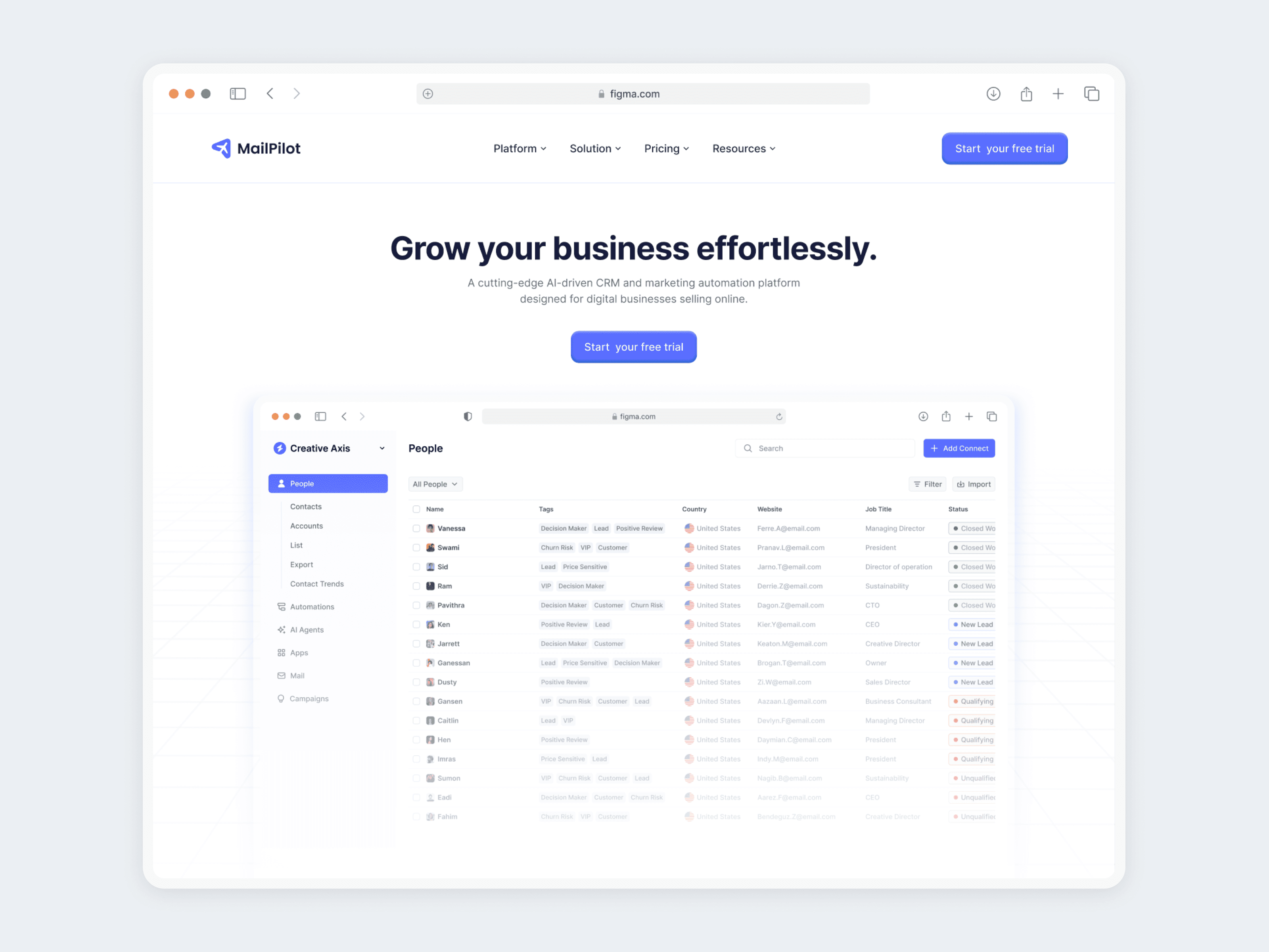 Email Marketing Automation SaaS CRM Landing Page | MailPilot