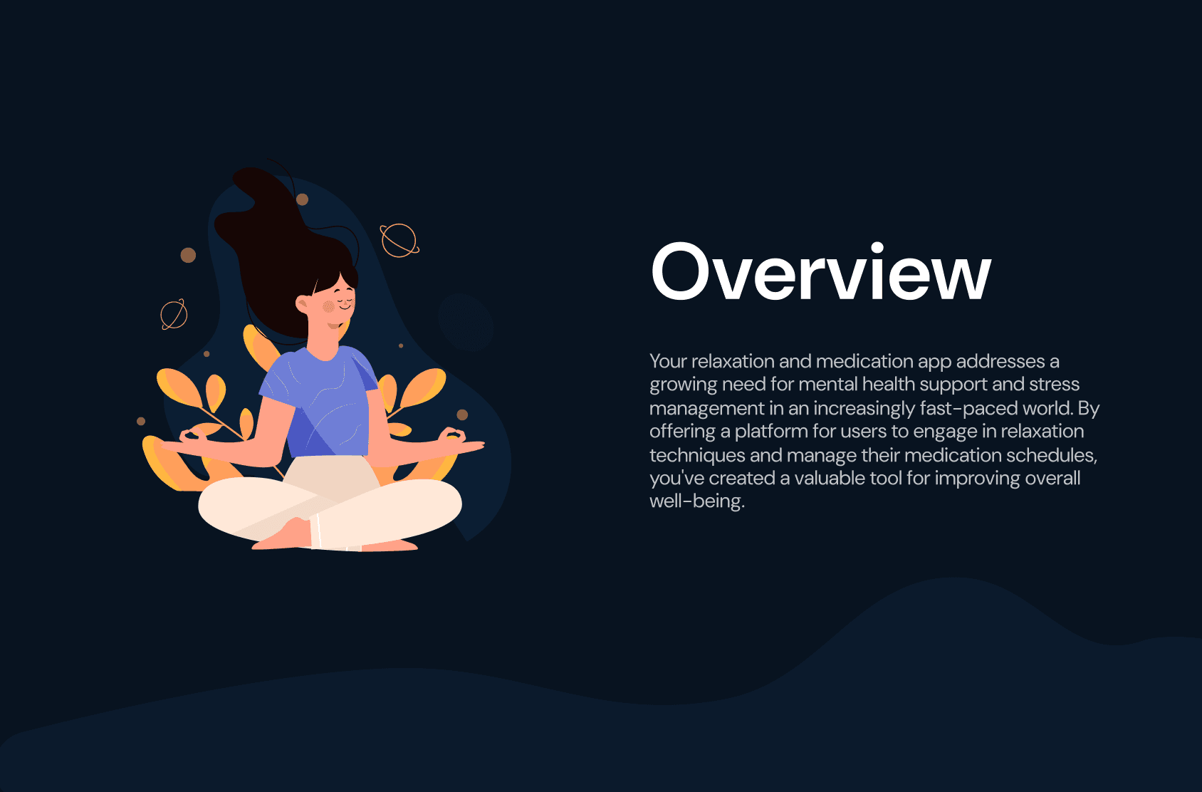 Your relaxation and meditation app addresses a growing need for mental health support and stress management in an increasingly fast-paced world. By offering a platform for users to engage in relaxation techniques and manage their medication schedules.