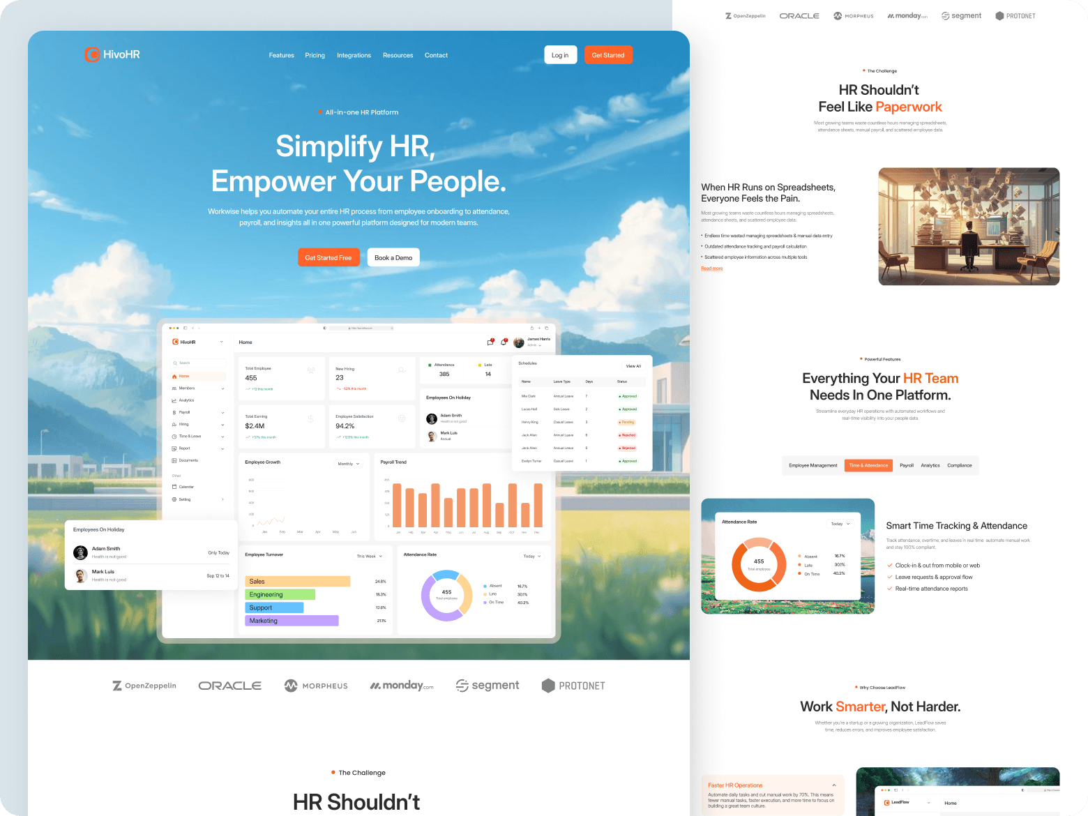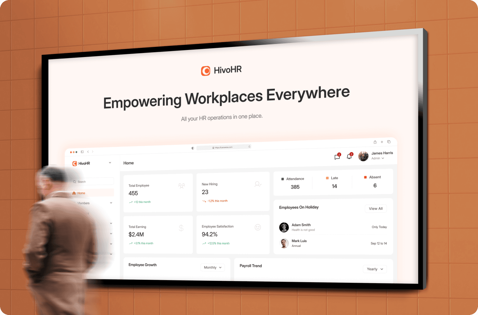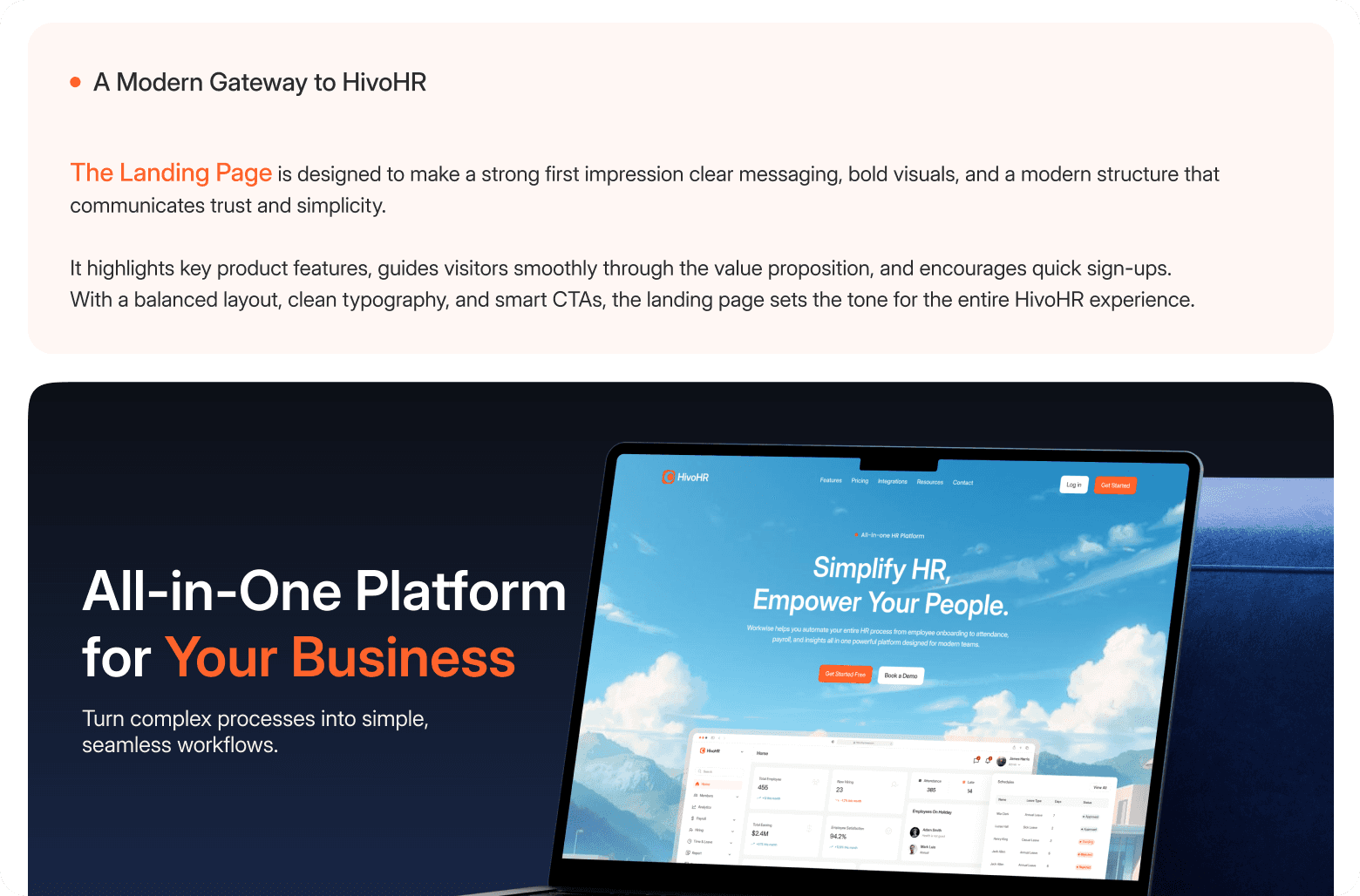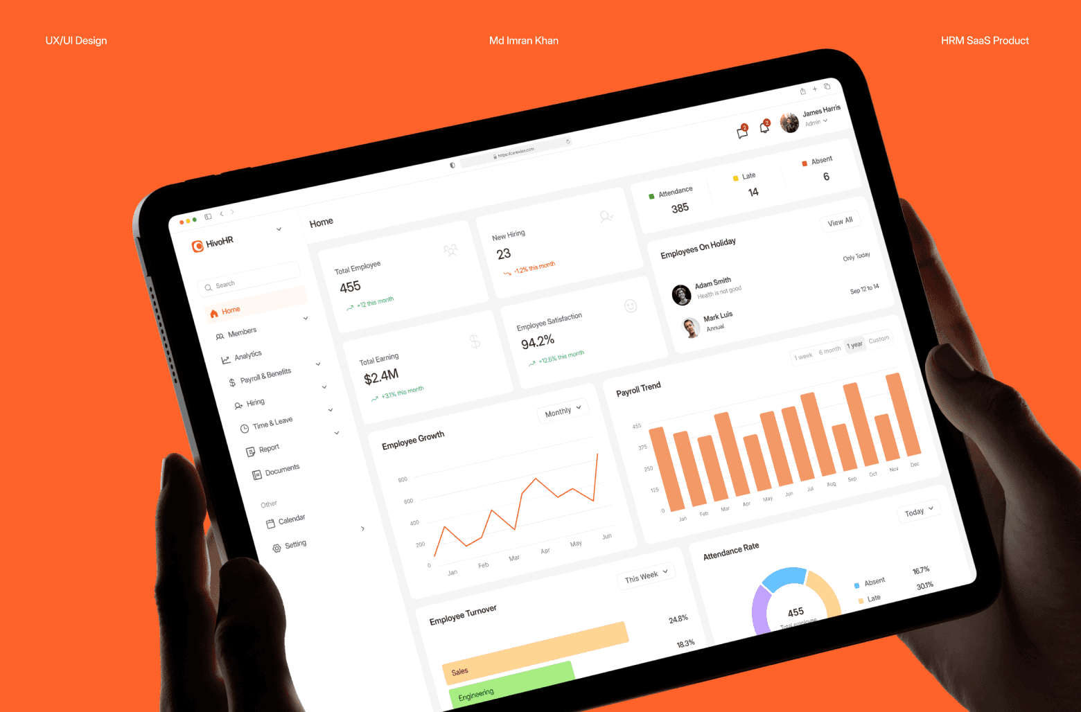 HRM SaaS product design focused on employee management, attendance tracking, payroll insights, and operational clarity.