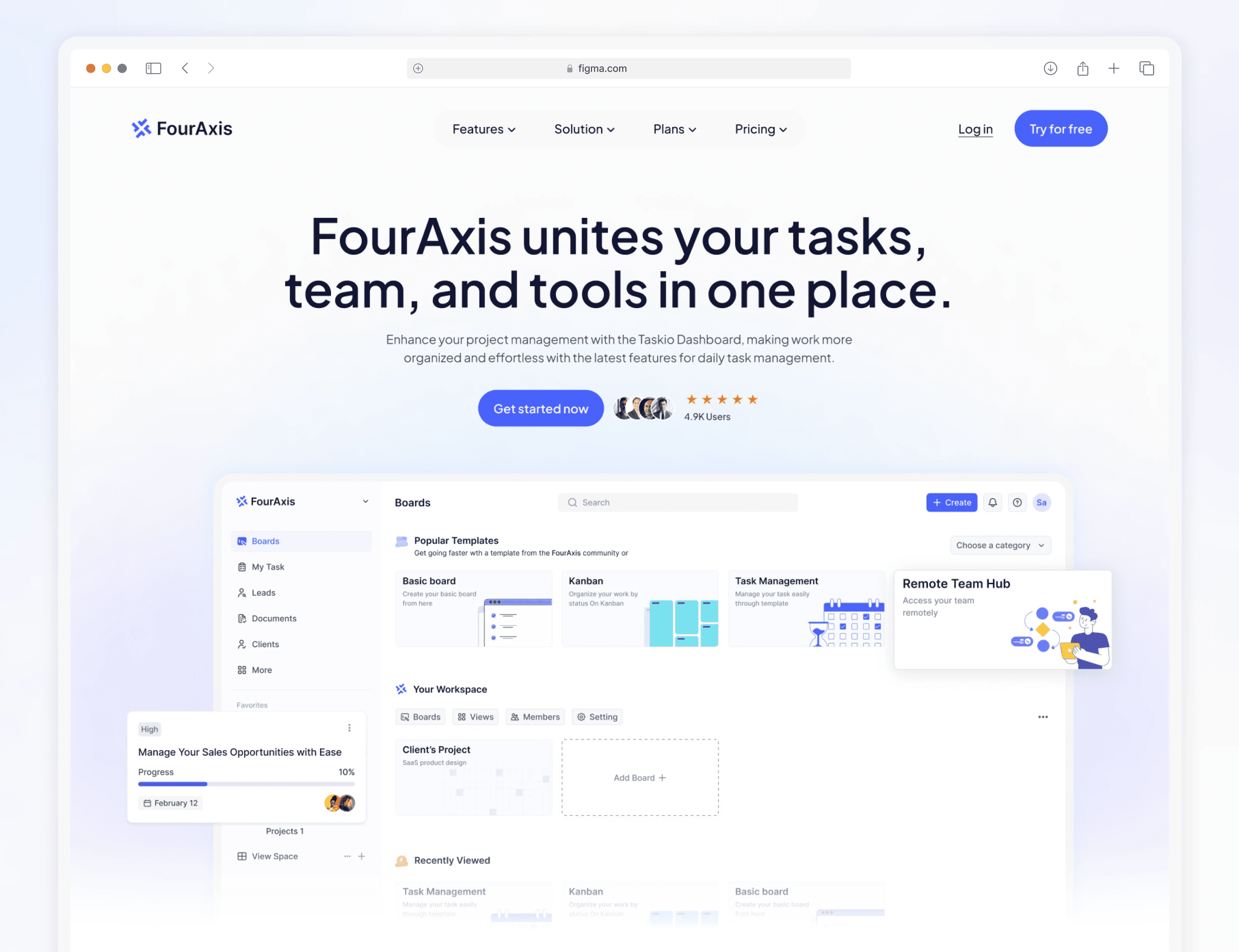Project Management SaaS Landing Page | FourAxis